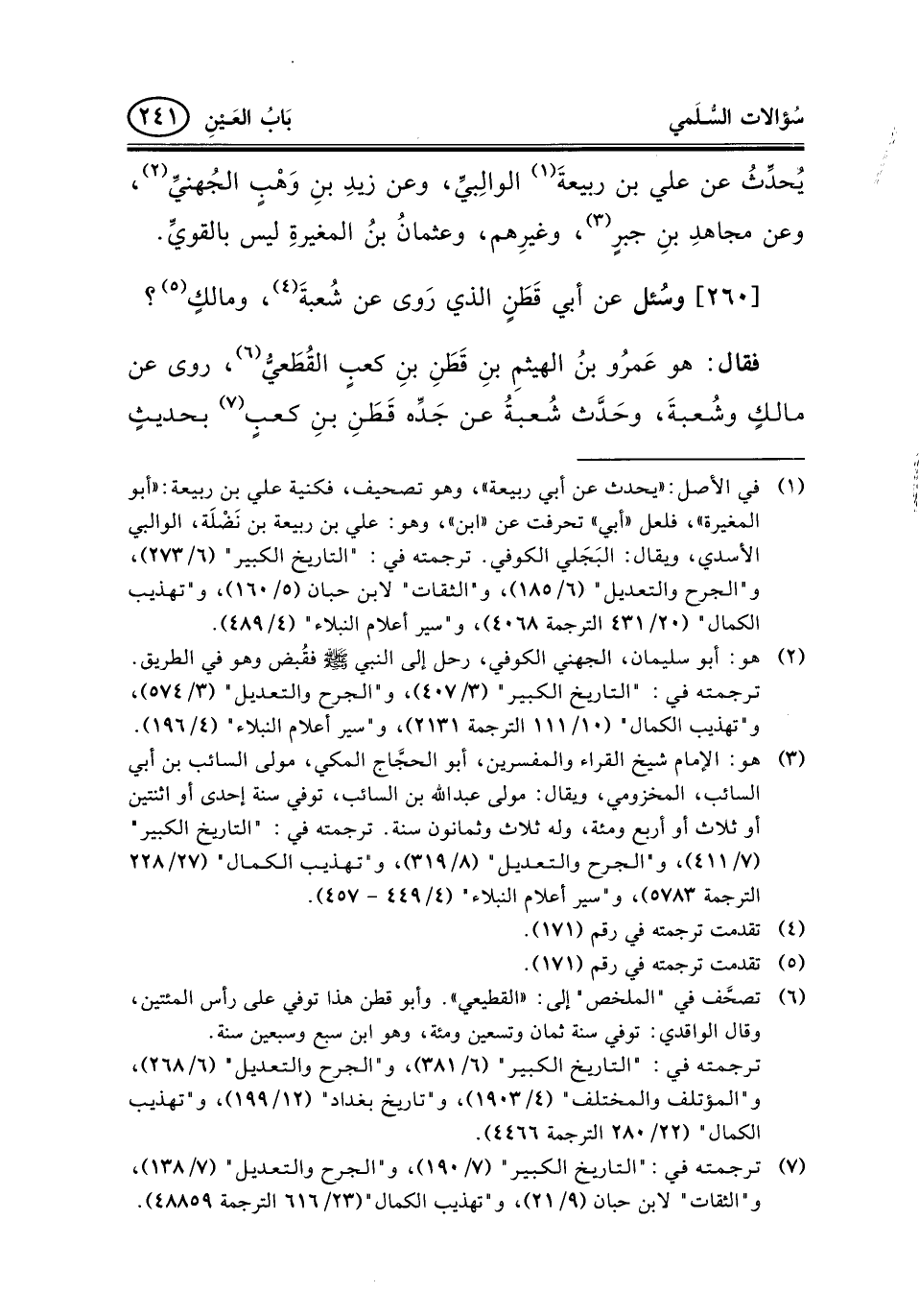 260 - وسُئل عن أبي قَطَنٍ الذي رَوى عن شُعبةَ (¬4) ، ومالكٍ (¬5) ؟