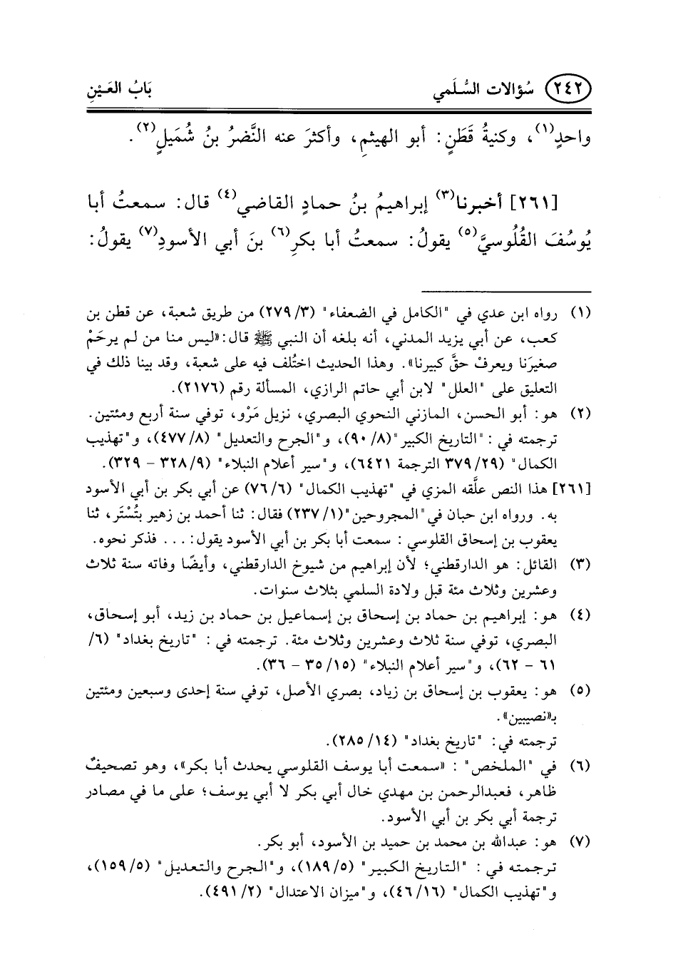 261 - أخبرنا (¬3) إبراهيمُ بنُ حمادٍ القاضي (¬4) قال: سمعتُ أبا يُوسُفَ القُلُوسيَّ (¬5) يقولُ: سمعتُ أبا بكرِ (¬6) بنَ أبي الأسودِ (¬7) يقولُ: