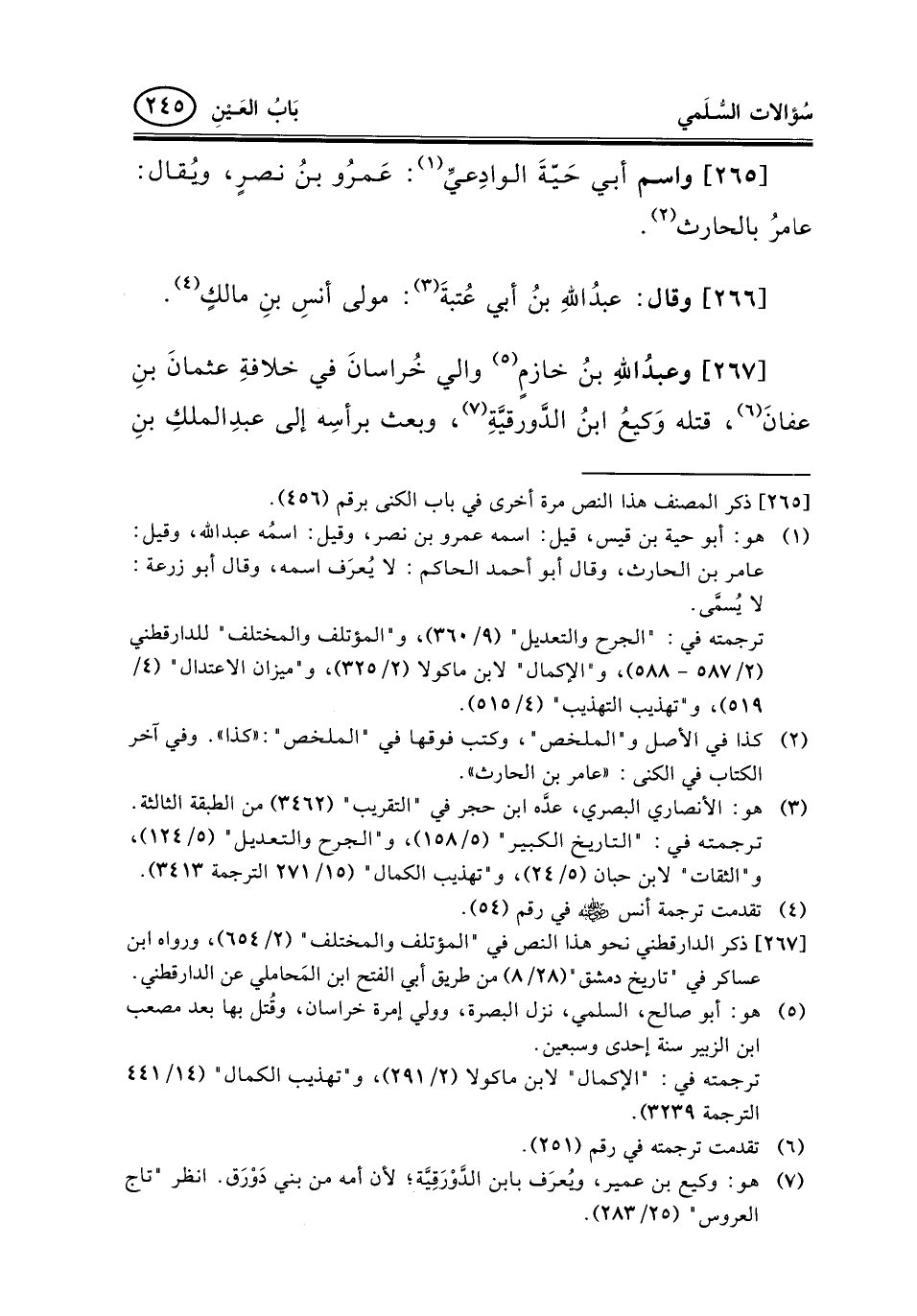 [267] ذكر الدارقطني نحو هذا النص في "المؤتلف والمختلف" (2/654) ، ورواه ابن عساكر في "تاريخ دمشق" (28/8) من طريق أبي الفتح ابن المَحاملي عن الدارقطني.