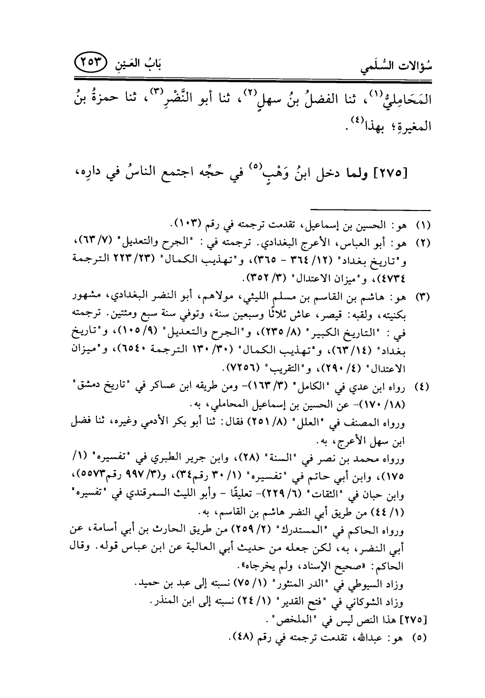 المَحَامِليُّ (¬1) ، ثنا الفضلُ بنُ سهلٍ (¬2) ، ثنا أبو النَّضْرِ (¬3) ، ثنا حمزةُ بنُ المغيرةِ؛ بهذا (¬4) .