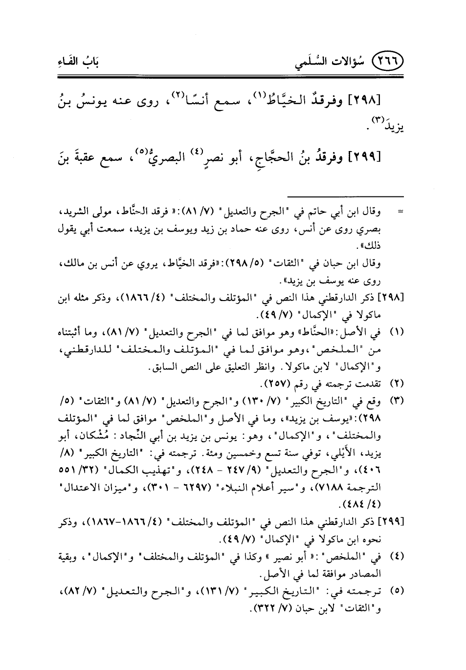 [299] ذكر الدارقطني هذا النص في "المؤتلف والمختلف" (4/1866-1867) ، وذكر نحوه ابن ماكولا في "الإكمال" (7/49) .