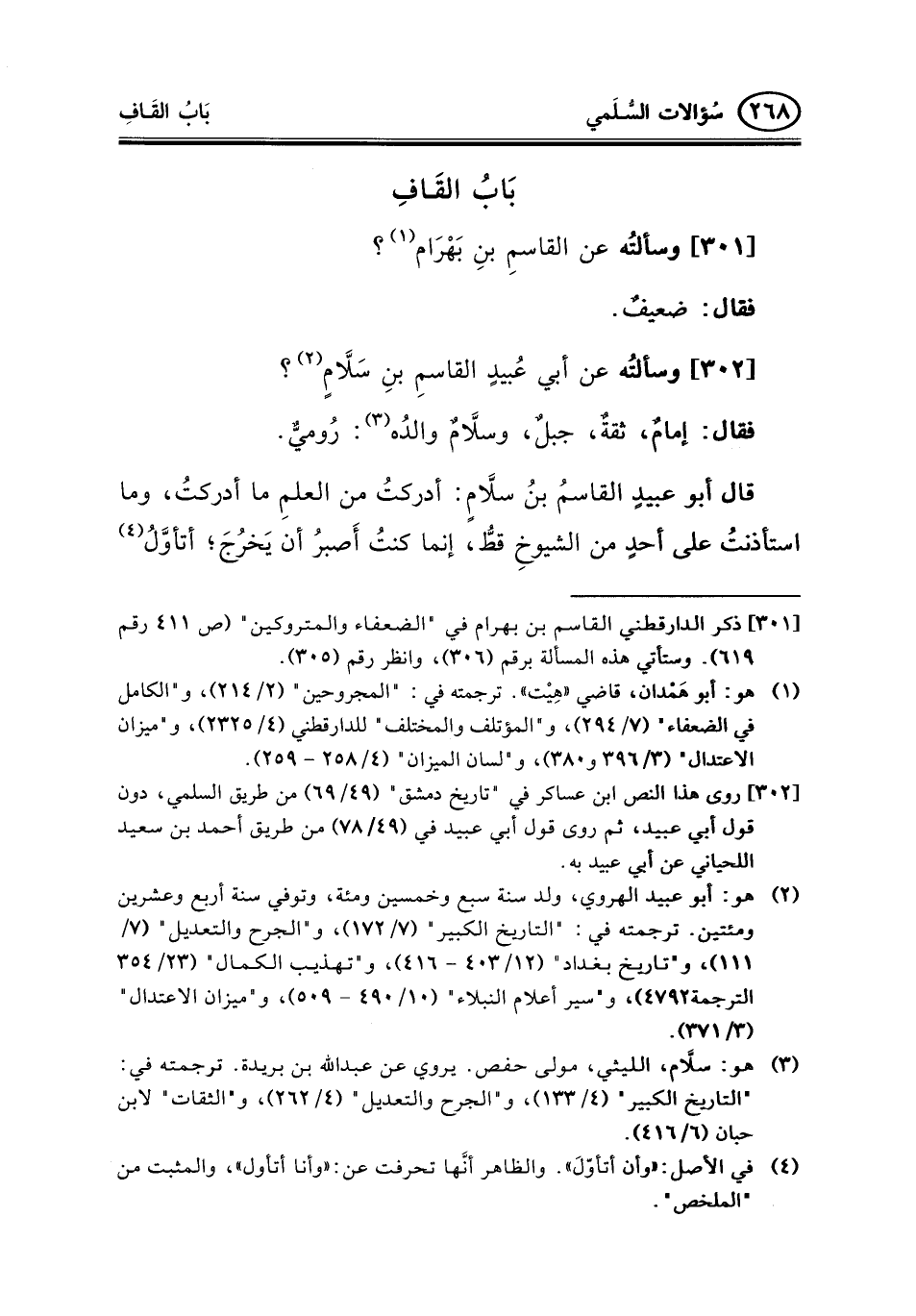 302 - وسألتُه عن أبي عُبيدٍ القاسمِ بنِ سَلاَّمٍ (¬2) ؟