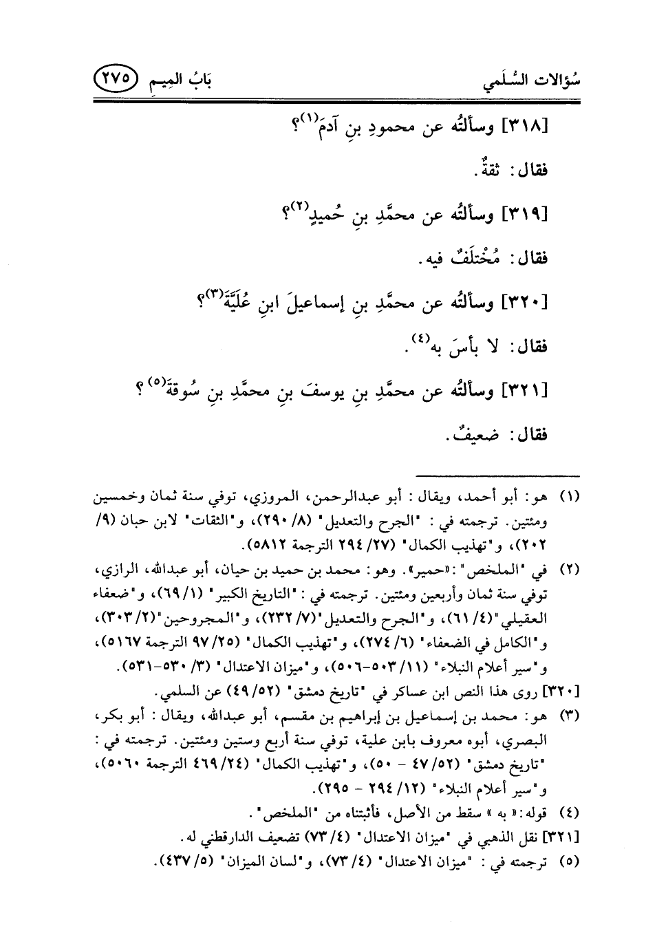 318 - وسألتُه عن محمودِ بنِ آدمَ (¬1) ؟
