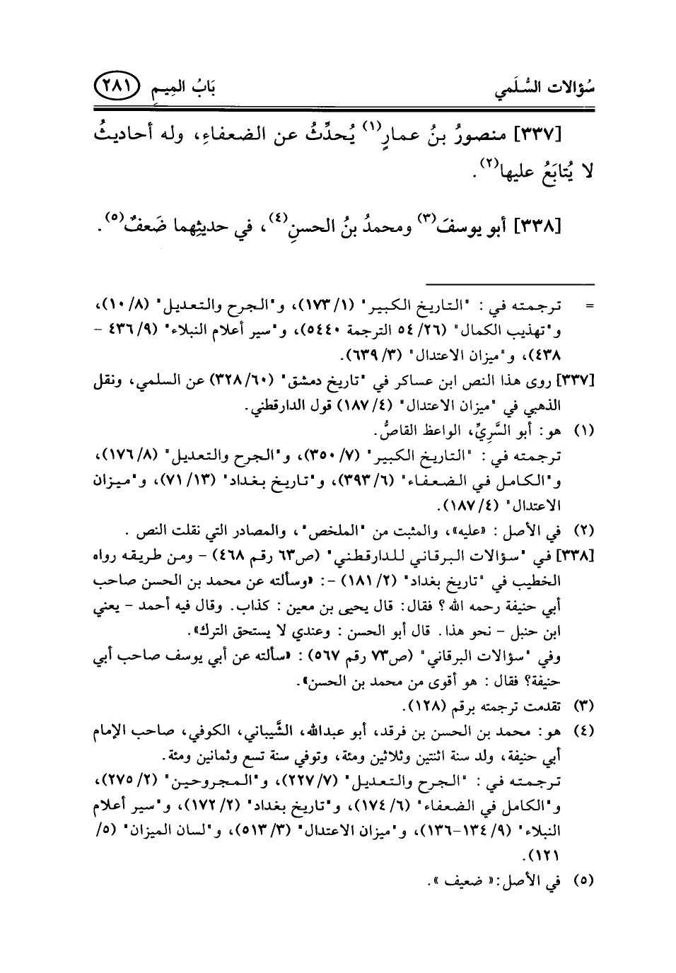 338 - أبو يوسفَ (¬3) ومحمدُ بنُ الحسنِ (¬4) ، في حديثِهما ضَعفٌ (¬5) .