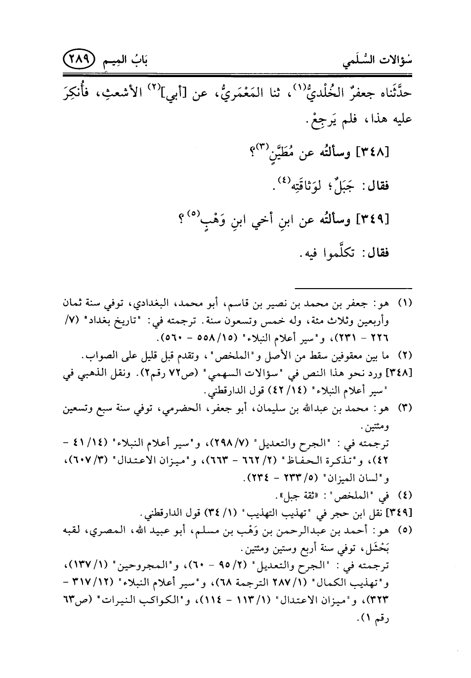 [348] ورد نحو هذا النص في "سؤالات السهمي" (ص72 رقم2) . ونقل الذهبي في "سير أعلام النبلاء" (14/42) قول الدارقطني.