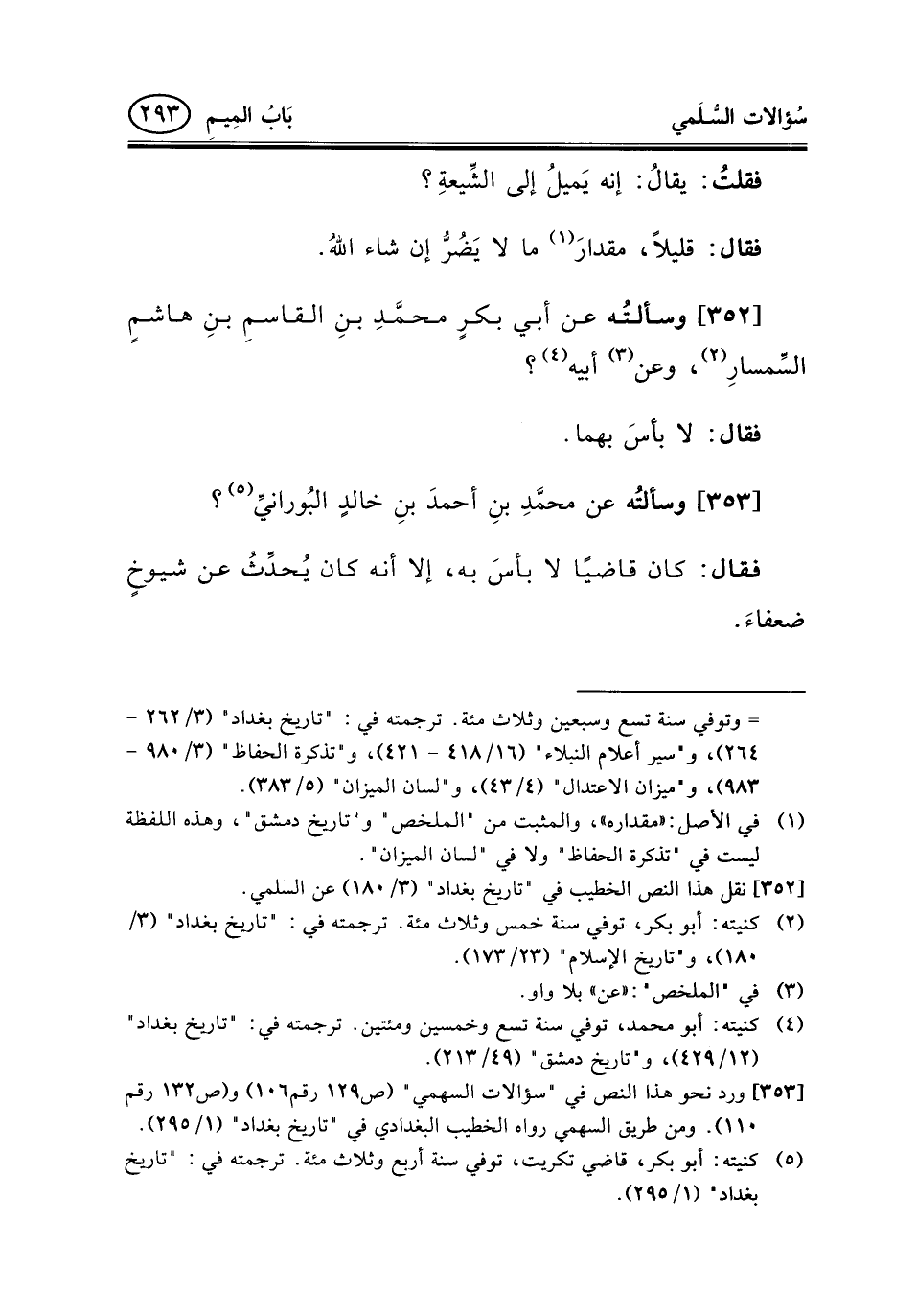 [352] نقل هذا النص الخطيب في "تاريخ بغداد" (3/180) عن السلمي.