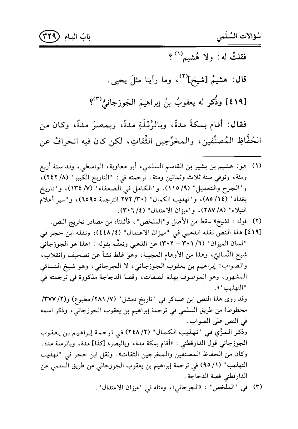 وقد روى هذا النص ابن عساكر في "تاريخ دمشق" (7/281/مطبوع) و (2/377/مخطوط) من طريق السلمي في ترجمة إبراهيم بن يعقوب الجوزجاني، وذكر اسمه في النص على الصواب.