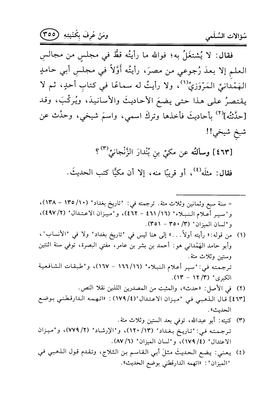 463 - وسألتُه عن مكيِّ بنِ بُنْدارَ الزَّنْجانيِّ (¬3) ؟