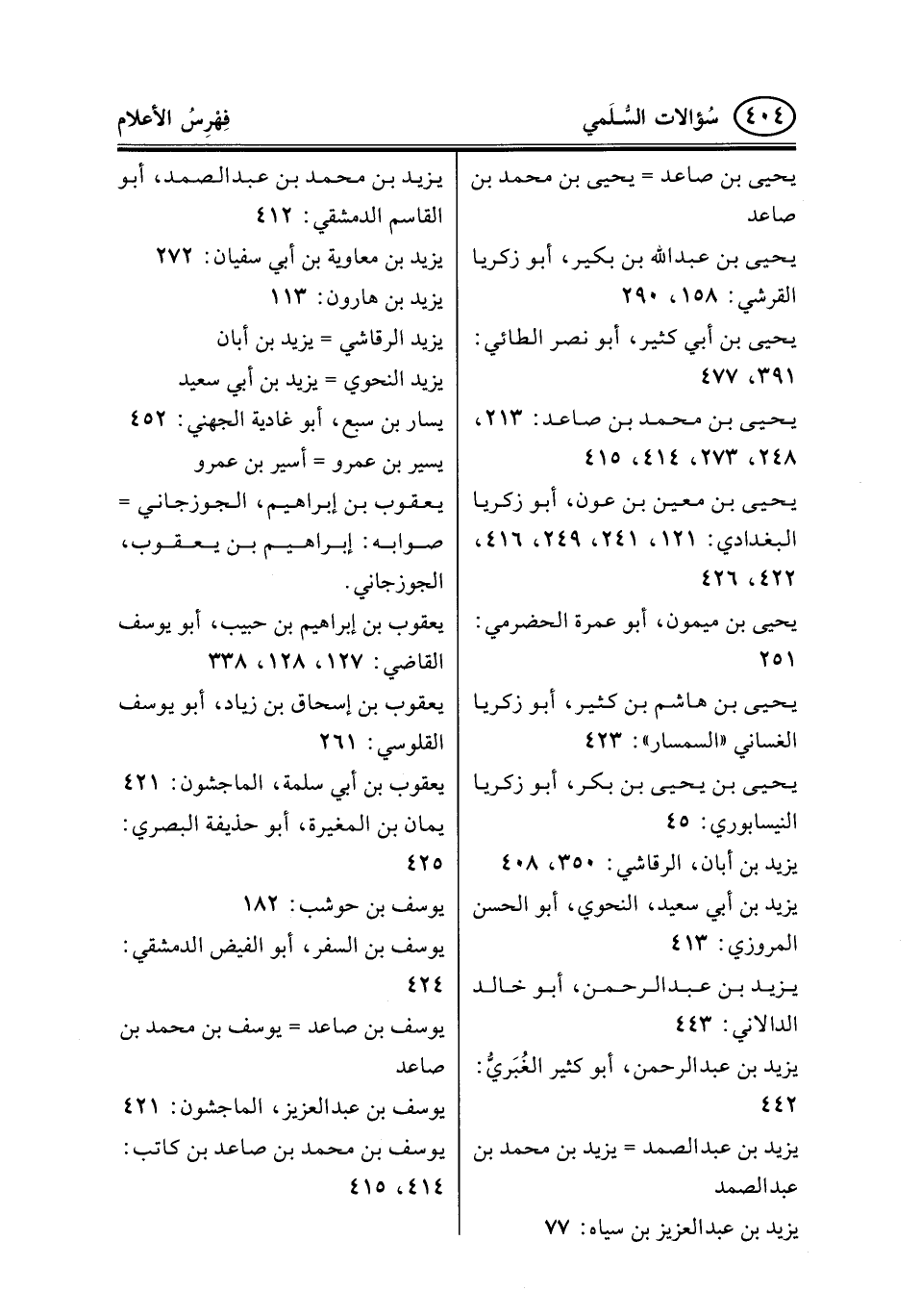 يحيى بن معين بن عون، أبو زكريا البغدادي: 121، 241، 249، 416، 422، 426