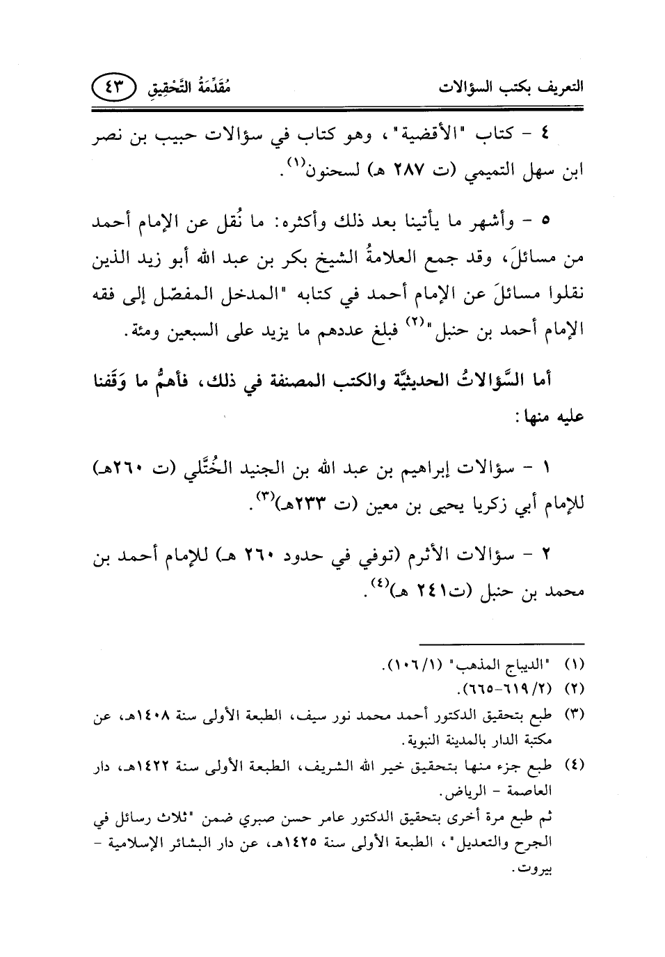 1- سؤالات إبراهيم بن عبد الله بن الجنيد الخُتَّلي (ت 260هـ) للإمام أبي زكريا يحيى بن معين (ت 233هـ) (¬3) .