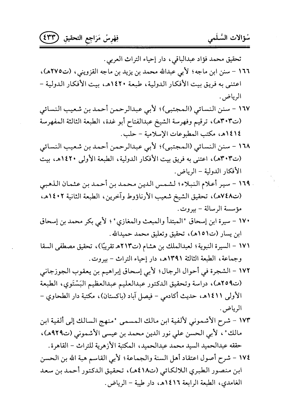 168- سنن النسائي (المجتبى) ؛ لأبي عبد الرحمن أحمد بن شعيب النسائي (ت303هـ) ، اعتنى به فريق بيت الأفكار الدولية، الطبعة الأولى 1420هـ، بيت الأفكار الدولية- الرياض.