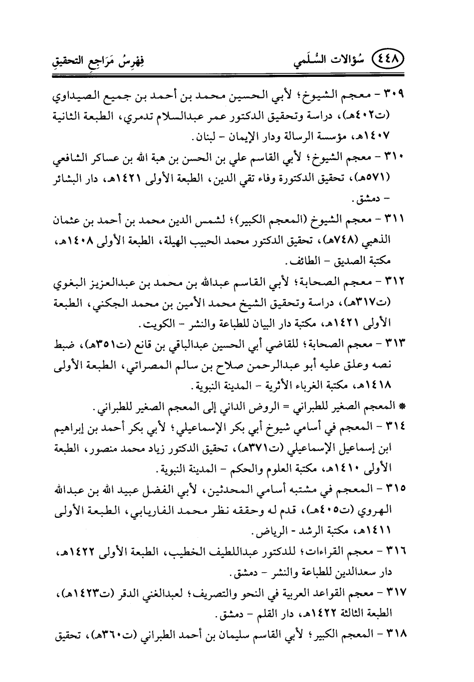 311- معجم الشيوخ (المعجم الكبير) ؛ لشمس الدين محمد بن أحمد بن عثمان الذهبي (748هـ) ، تحقيق الدكتور محمد الحبيب الهيلة، الطبعة الأولى 1408هـ، مكتبة الصديق- الطائف.