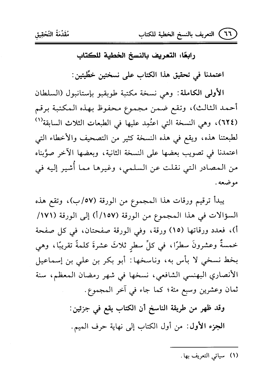 رابعًا: التعريف بالنسخ الخطية للكتاب