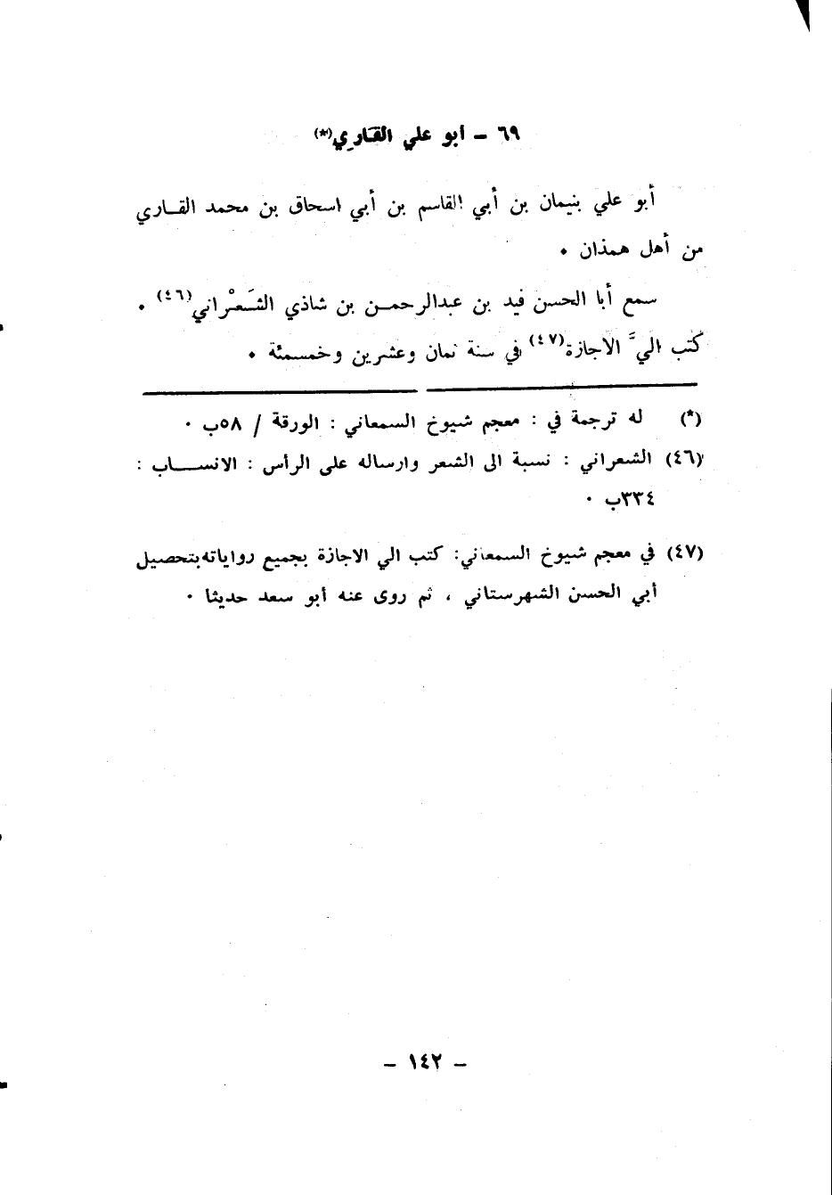 شاب كان يسمع معي الحديث من شيوخنا، وكان كيساً، متحركاً، حريصاُ على السماع، سمع قبلي الحديث بأصبهان. أنبأنا أبو الفرج المؤذن وكتب لي بخطه. أنبأنا أبو بكر الصالحاني.