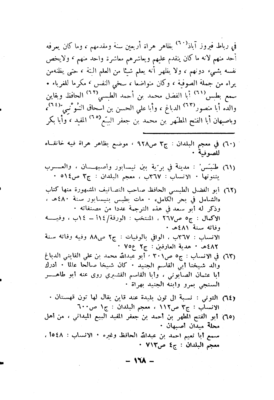 وموسياباذ إحدى قراها. كان شيخاً، صالحاً، ظريفاً، كيساً، حسن الأخلاق، له رباط بهمذان يخدم الصوفية فيه بنفسه ويعتقدون فيه، سمع أباه، وأبا القاسم الفضل بن أبي حرب الجرجاني، وأبا الفتح عبدوس بن محمد الهمذاني، وأبا الفتح عبد الغفار بن منصور بن الحسن الهمذاني وغيرهم. كتبت عنه بهمذان في النوبة الثانية. وكانت ولادته في المحرم سنة إثنتين وستين وأربعمئة بهمذان، ووفاته بهمذان يوم الثلاثاء النصف من رجب سنة ثلاث وخمسين وخمسمئة ودفن في رباطه.