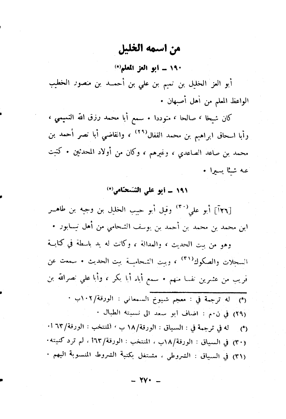 كان شيخاً، صالحاً، يكبر بجامع دمشق، ويبلغ الناس تكبير الإمام، وكان أبو محمد عبد العزيز الكتاني الحافظ أجاز لأهل دمشق وكان هو من الموجودين وقت الإجازة، فقرأت عليه في جماعة من طلبة الحديث جزءاً من حديث خيثمة الأطرابلسي، وكانت ولادته في حدود سنة ستين وأربعمئة بدمشق، وتوفي بها يوم الخميس الخامس من شهر رمضان سنة إثنين وأربعين وخمسمئة