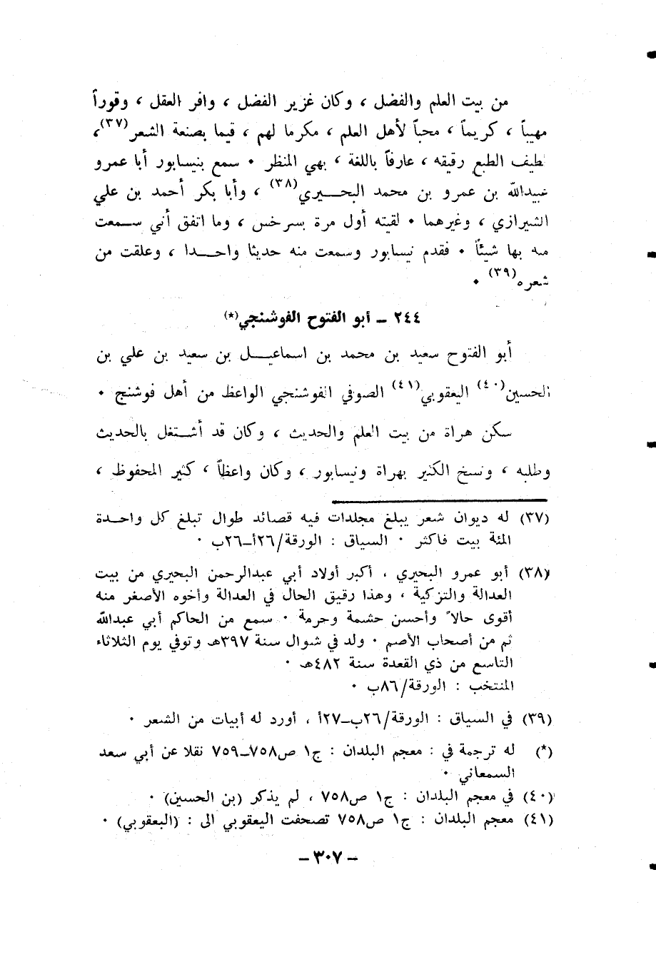 العمر الطويل، وتفرد في وقته بالرواية عن جماعة لن يبق من كان يروى عنهم في عصره، مثل أبي سعيد الفضيل بن أبي الخير الميهني، وأبي محمد عبد الله بن يوسف الجويني، وأبي عبد الرحمن محمد بن أحمد ابن محمد بن جعفرالشاذياني وغيرهم، وسمع أبا عثمان الصابوني، وأبا حفص بن مسرور، وأبا الحسين عبد الغافر، وأبا صالح الموذن، وأبا الفضل أحمد بن محمد الفراتي، وأبا سعد الكنجروذي، وأبا سعد وجيه ابن أبي طالب الجلاّب المستملي وغيرهم. وله إجازة عن أبي الحسين أحمد بن علي بن أحمد بن محمد بن عبد الله النيسابوري، وغيره. سمّعني منه الإمام واليد أجزاء ومن جملتها جزء أبي عمر بن