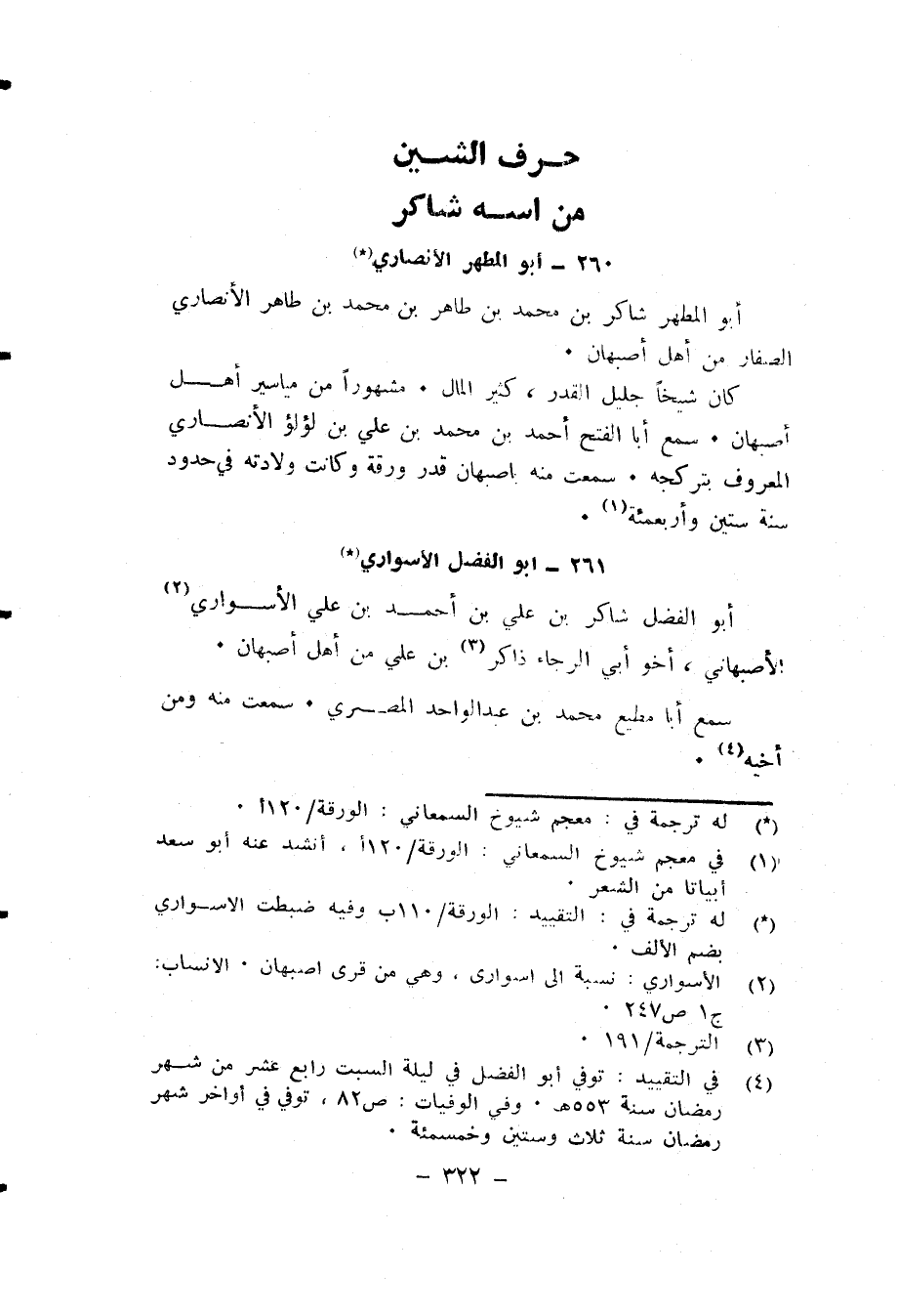 أبو سعيد شيبان بن عبد الله بن شيبان بن عبد الله بن أحمد ابن محمد بن شيبان بن محمد بن سمرة بن المفضل بن قيس بن عدنان ابن نزار بن حرب بن ربيعة بن الحسن بن المفضل المحتسب المؤدب الأسدي من أهل أصبهان.