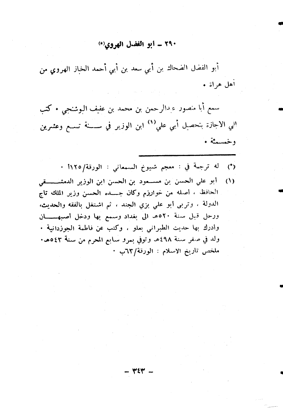 والد شيخنا أبي منصور الحسين، وأبي الخير سعيد الأديب من أولاد المحدثين. كان شيخاً صالحاً كثير السماع، كف بصره في آخر عمره. سمع جده الأعلى أبا ذر محمد بن إبراهيم الصالحاني، وأبا بكر محمد بن عبد الله بن ريذة الضبي وحدث عنهما. كتب إليّ الإجازة في تسع أو عشر وخمسمئة.