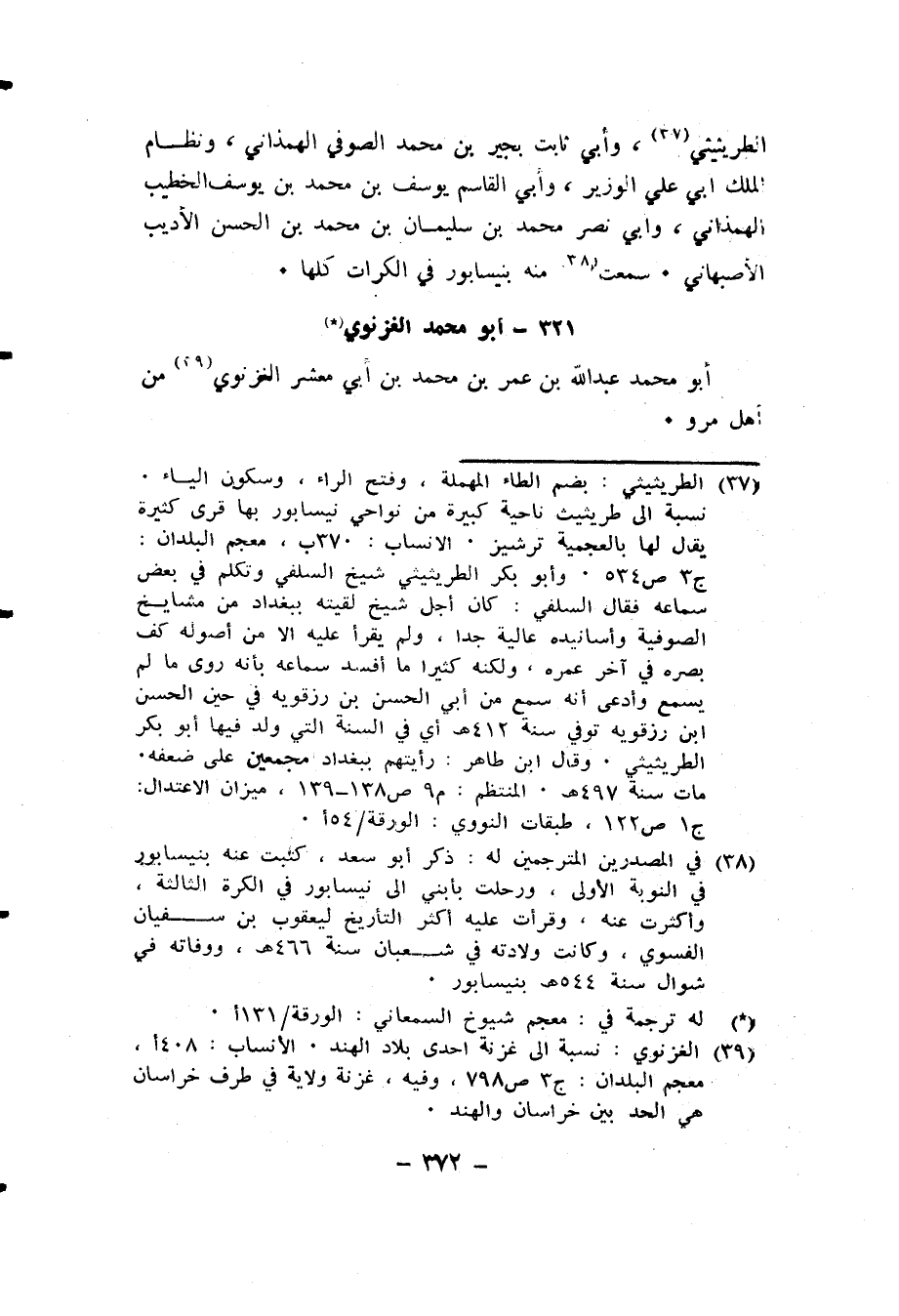 في ترجمة عتيق وهو من أهل سرخس. شيخ مشهور كبير السن. سمع السيد أبا الحسن محمد بن محمد الحسني الحافظ. سمعت منه شيئاً، وكانت ولادته في سنة إحدى وخمسين وأربعمئة بسرخس وتوفي بها غرة ذي القعدة سنة أربعين وخمسمئة.