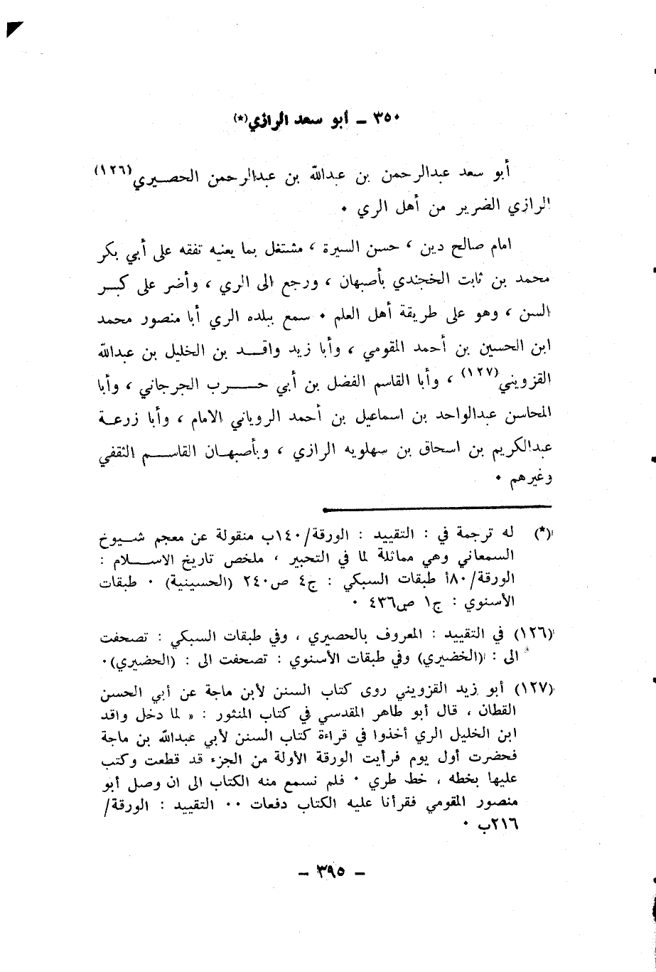 كان فقيهاً فاضلاً، عارفاً بالمذهب، مناظراً ورعاً، كثير التلاوة والصلاة. يسكن الجامع الأقدم، وكان يؤم الناس في الصلوات الخمس، وولي الخطابة نيابة عن عمي وكان تفقه على الإمام جدي أبي المظفر ثم خرج إلى بخارى، ولقي بها الأئمة. سمع الإمام جدي، وبهراة أبا سعد عبد العزيز بن عبد الله بن الحسين القايني. كتبت عنه شيئاً يسيراً قبل خروجي إلى الرحلة. وكانت وفاته سحر ليلة الخميس لست ليال خلون من شهر ربيع الأول سنة اثنتين وأربعين وخمسمئة وصليت عليه ودفن بسنجذان
