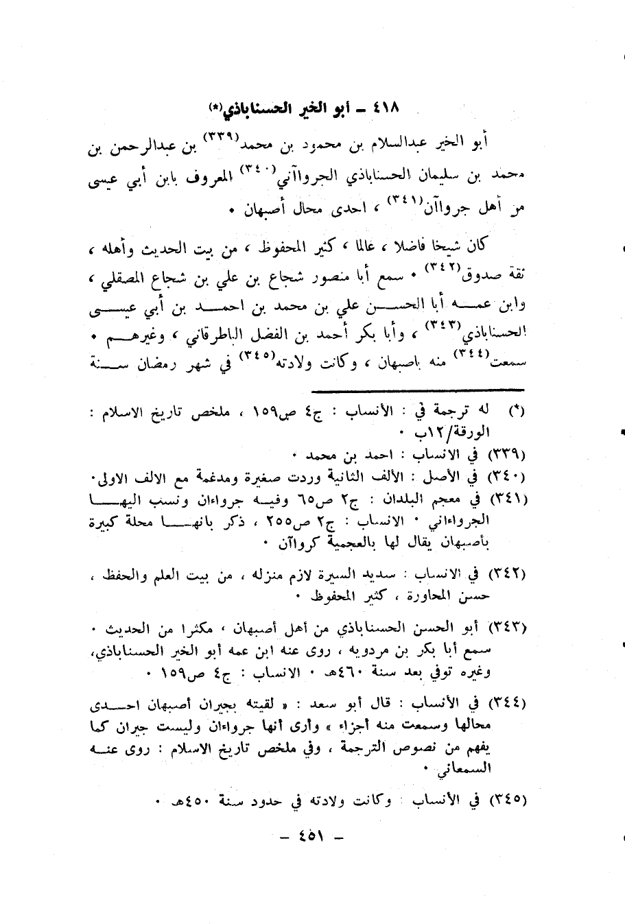 القشيري، وأبا بكر الشيروي، يروي عنه جزء ابن ملاس، وبمرو أبا منصور محمد بن علي بن محمود الكراعي التاجر، وغيرهم. سمعت منه أحاديث يسيرة بنيسابور، وسمعته يقول: كنت بمرو مع إسماعيل بن عبد الرحمن العصايدي فدخلنا يوماً على الإمام إبراهيم بن أحمد المروالروذي، فقعدنا ساعة عنده، وعرّفت نفسي عنده، وقلت له: أنا قرأت الفرائض والحساب، وأعرف ذلك العلم، فأكرمني، ثم قلت له: تسألني مسألة فقال: في وقت آخر. فألححت وقلت: لا بد أن تسألني عن مسألة من الفرائض حتى تعرف أني تعبت في تحصيل ذلك العلم. فسألني مسألة، فما أحسنت جوابها فخجلت فقلت