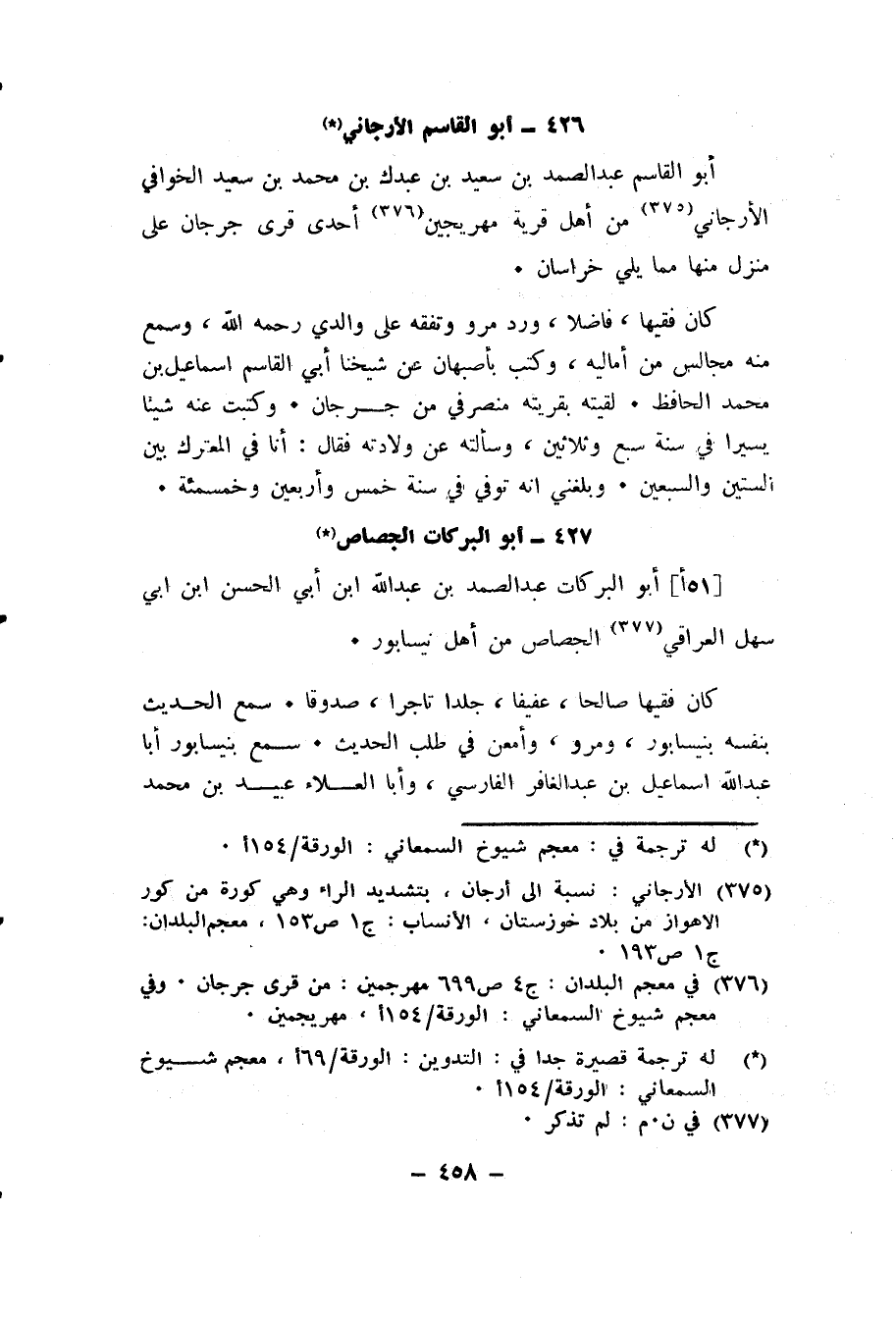 حملني والدي رحمه الله إلى نيسابور، وكان يحضر الشيخ عنده في مدرسة أبي نصر ابن أبي الخير وأخي مجلسه عنده، وسمعنا منه الكثير، وكنت ابن ثلاث سنين ونصف، وأكثر التسميات مثبتة بخط والدي رحمه الله. كان يكتب في السماع عنه اسم نفسه ثم يقول: