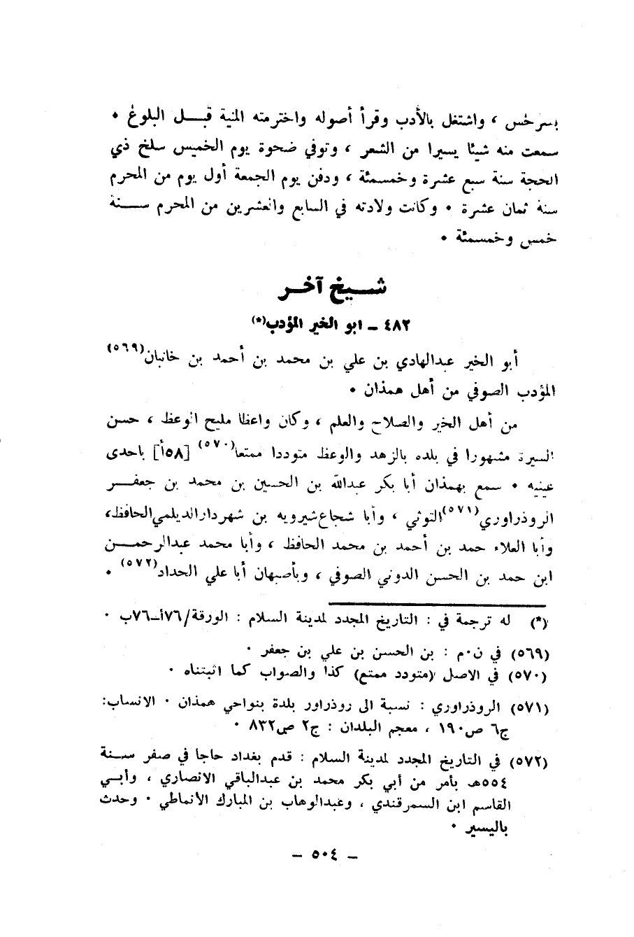 جملتها " كتاب " الصحيح " لأبي عبد الله محمد بن إسماعيل البخاري، يرويه عن أبي القاسم بن مهران المديني، عن أبي علي إسماعيل بن محمد ابن حاجب الكشاني، عن الفربري عنه، وكتاب " التفسير " لأبي الشيخ عبد الله بن محمد بن حيان يرويه عن أبي أحمد المكفوف عنه، وكانت كتابته الإجازة لي في ذي القعدة سنة عشر وخمسمئة.