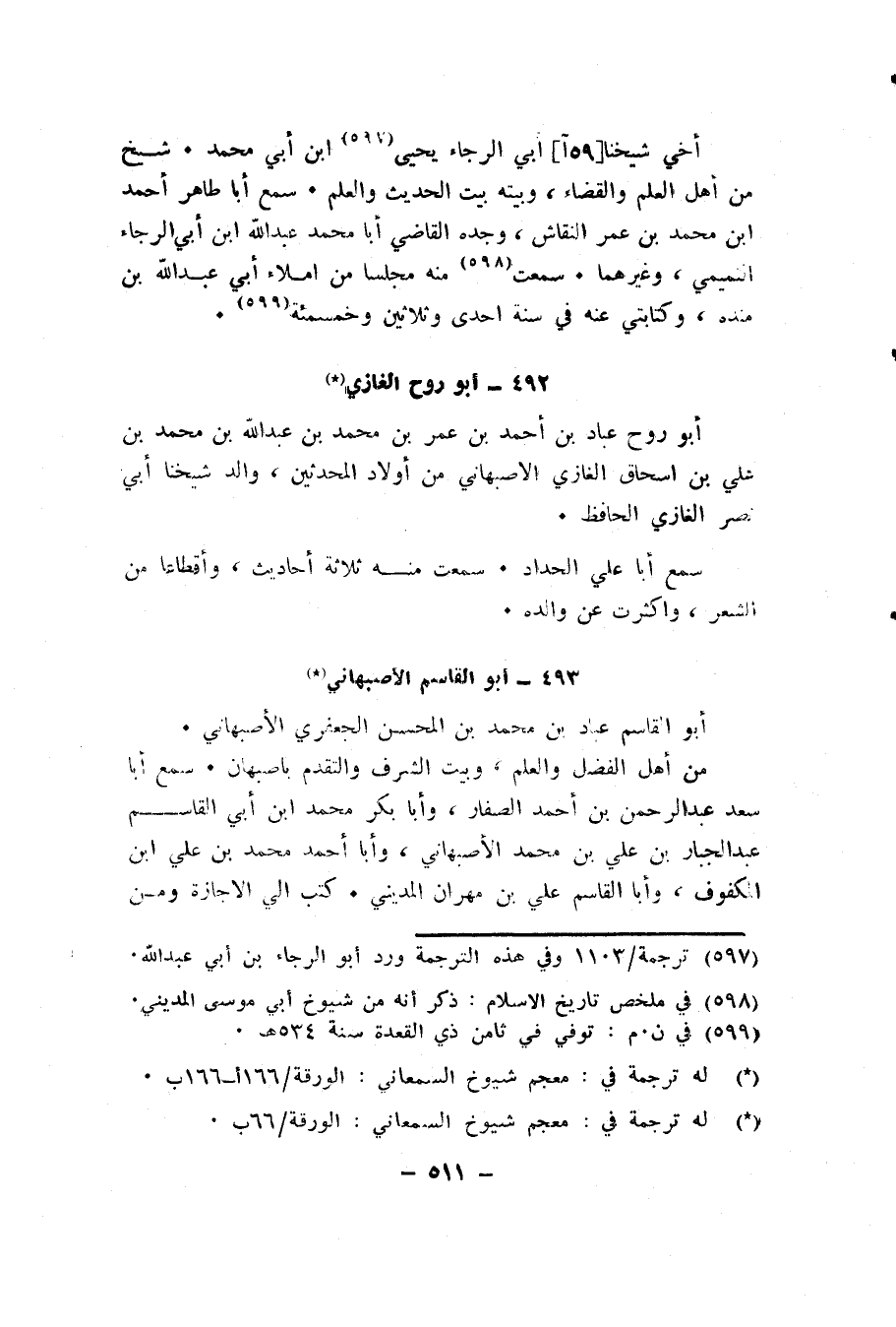 وغيرهم. كتبت عنه بمرو، وكنت أتبرك به وأزوره، ومن جملة ما سمعت منه: " الأربعين " التي جمعها هبة الله الشيرازي بروايته عنه، وكانت ولادته في حدود سنة خمسين وأربعمئة بالشاش، وتوفي بمرو في أواخر سنة ثمان أو أوائل سنة تسع وعشرين وخمسمئة ودفن على طرف نهر الرزيق.