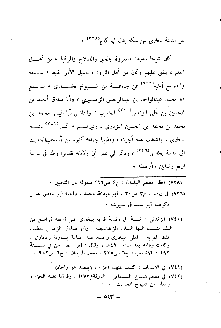 إمام فاضل، مناظر أصولي، حسن السيرة، مشتغل بما يعنيه، تارك للفضول. تفقه على الإمام الموفق الهروي، وبرع في الفقه. سمع أبا عمرو الفضل بن أحمد بن أبي أحمد بن متويه الكاكوي، وأبا عبد الله الدقاق الحافظ، وغيرهما. كتبت عنه مجلساً من أمالي الدقاق،