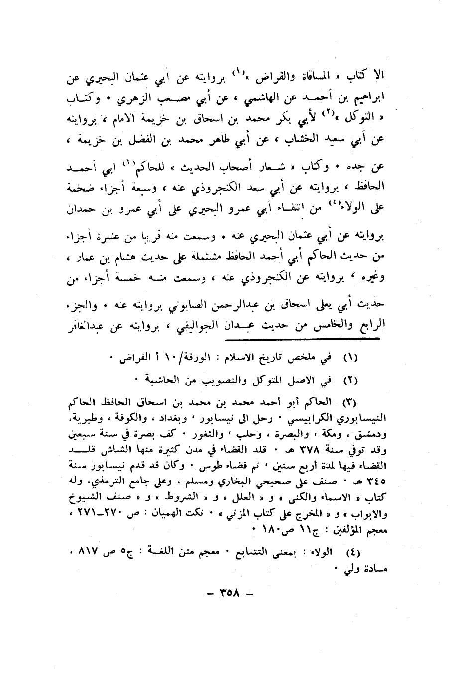 إلا كتاب " المساقاة والقراض " بروايته عن أبي عثمان البحيري عن إبراهيم بن أحمد عن الهاشمي، عن أبي مصعب الزهري. وكتاب " التوكل " لأبي بكر محمد بن إسحاق بن خزيمة الإمام، بروايته عن أبي سعيد الخشاب، عن أبي طاهر محمد بن الفضل بن خزيمة، عن جده. وكتاب " شعار أصحاب الحديث " للحاكم أبي أحمد الحافظ، بروايته عن أبي سعيد الكنجروذي عنه، وسبعة أجزاء ضخمة على الولاء من انتقاء أبي عمرو البحيري على أبي عمرو بن حمدان بروايته عن أبي عثمان البحيري عنه. وسمعت منه قريباً من عشرة أجزاء من حديث الحاكم أبي أحمد الحافظ مشتملة على حديث هشام بن عمار، وغيره، بروايته عن الكنجروذي عنه، وسمعت منه خمسة أجزاء من حديث أبي يعلى إسحاق بن عبد الرحمن الصابوني بروايته عنه. والجزء الرابع والخامس من حديث عبدان الجواليقي، بروايته عن عبد الغافر
