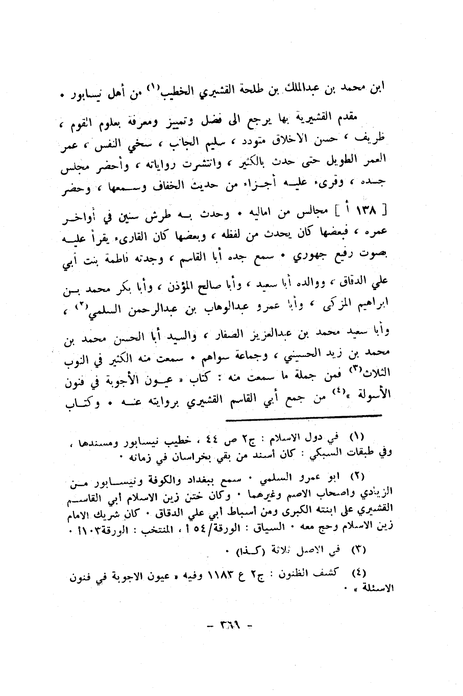 ابن محمد بن طلحة القشيري الخطيب من أهل نيسابور.