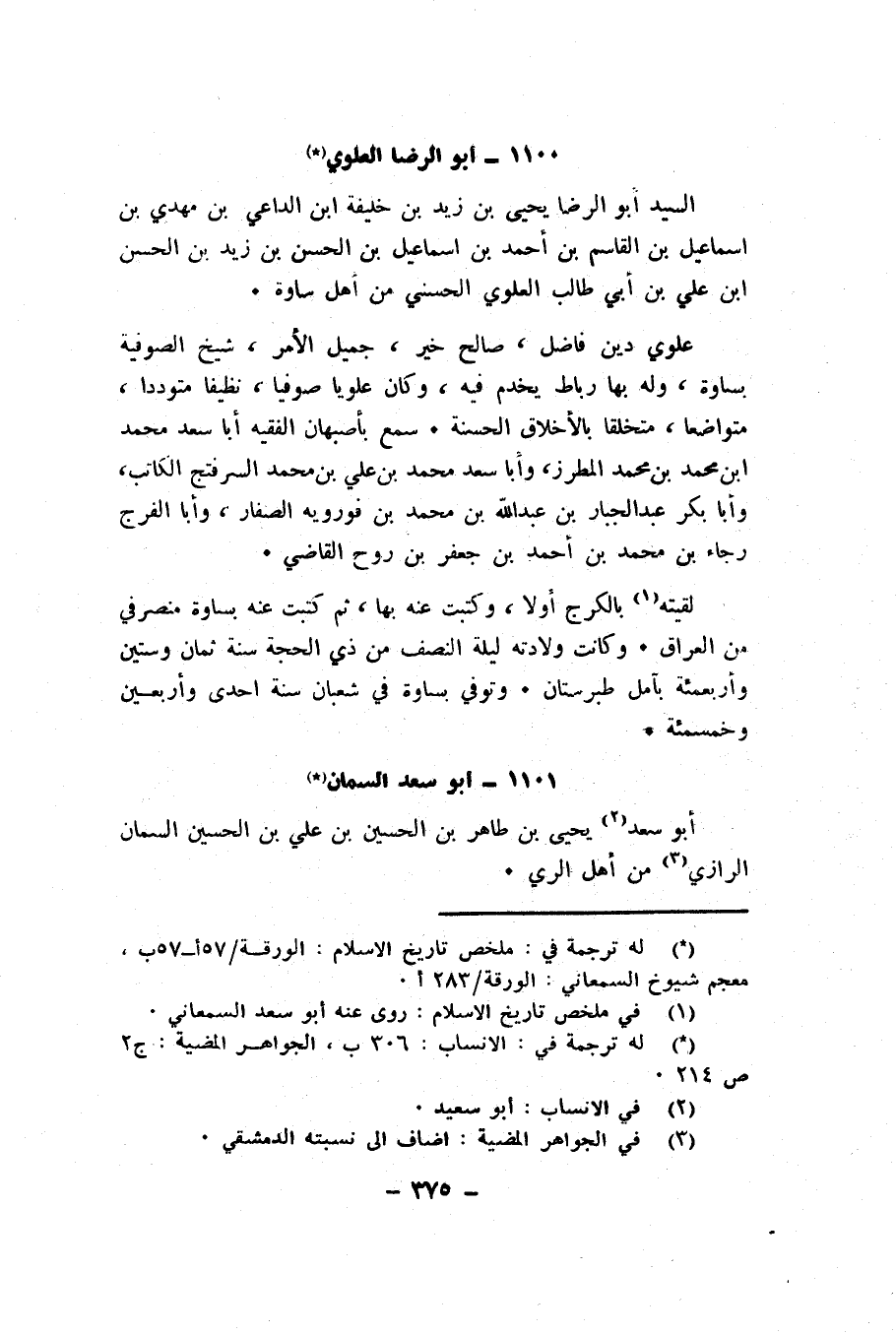 السيد أبو الرضا يحيى بن زيد بن خليفة ابن الداعي بن مهدي بن إسماعيل بن القاسم بن أحمد بن الحسن بن زيد بن الحسن ابن علي بن أبي طالب العلوي الحسني من أهل ساوة.