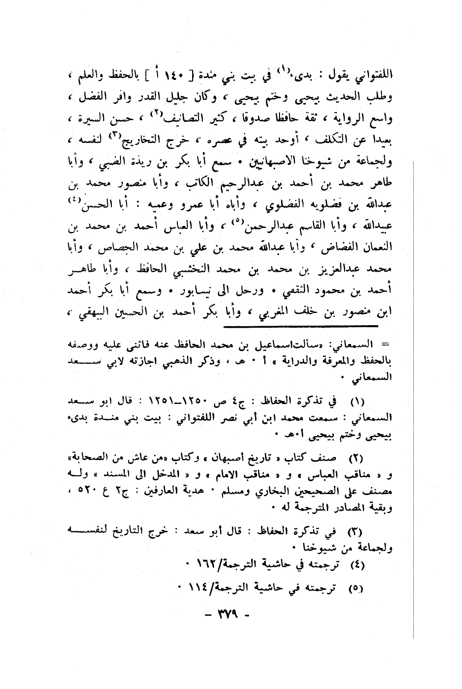اللفتواني يقول: بدئ في بيت بني مندة بالحفظ والعلم، وطلب الحديث بيحيى وختم بيحيى، وكان جليل القدر وافر الفضل، واسع الرواية، ثقة حافظاً صدوقاً، كثير التصانيف، حسن السيرة، بعيداً عن التكلف، أوحد بيته في عصره، خرّج التخاريج لنفسه، ولجماعة من شيوخنا الأصبهانيين. سمع أبا بكر بن ريذة الضبي، وأبا طاهر محمد بن أحمد بن عبد الرحيم الكاتب، وأبا منصور محمد بن عبد الله بن فضلويه الفضلوي، وأباه أبا عمرو وعميه: أبا الحسن عبيد الله، وأبا القاسم عبد الرحمن، وأبا العباس أحمد بن محمد بن النعمان الفضاض، وأبا عبد الله محمد بن علي بن محمد الجصاص، وأبا محمد عبد العزيز بن محمد بن محمد النخشبي الحافظ، وأبا طاهر أحمد بن محمود الثقفي. ورحل إلى نيسابور. وسمع أبا بكر أحمد ابن منصور بن خلف المغربي، وأبا بكر أحمد بن الحسين البيهقي،