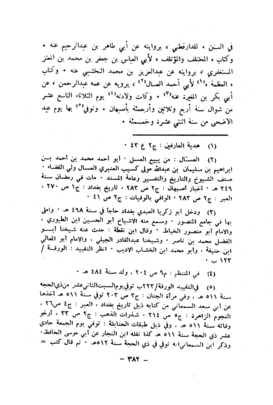 في السنن " للدارقطني، بروايته عن أبي طاهر بن عبد الرحيم عنه. وكتاب " المختلف والمؤتلف " لأبي العباس بن جعفر بن محمد بن المعتز المستغفري، بروايته عن عبد العزيز بن محمد النخشبي عنه. وكتاب " العظمة " لأبي أحمد العسال، بروايته عن عمه عبد الرحمن، عن أبي بكر بن المغيرة عنه. وكانت ولادته يوم الثلاثاء التاسع عشر من شوال سنة أربع وثلاثين وأربعمئة بأصبهان. وتوفي بها يوم عيد الأضحى من سنة اثنتي عشرة وخمسمئة.