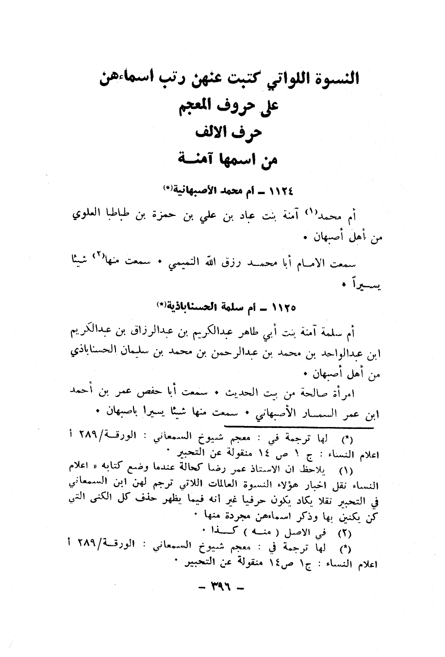 أم سلمة آمنة بنت أبي طاهر عبد الكريم بن عبد الرزاق بن عبد الكريم ابن عبد الواحد بن محمد بن عبد الرحمن بن محمد بن سليمان الحسناباذي من أهل أصبهان.