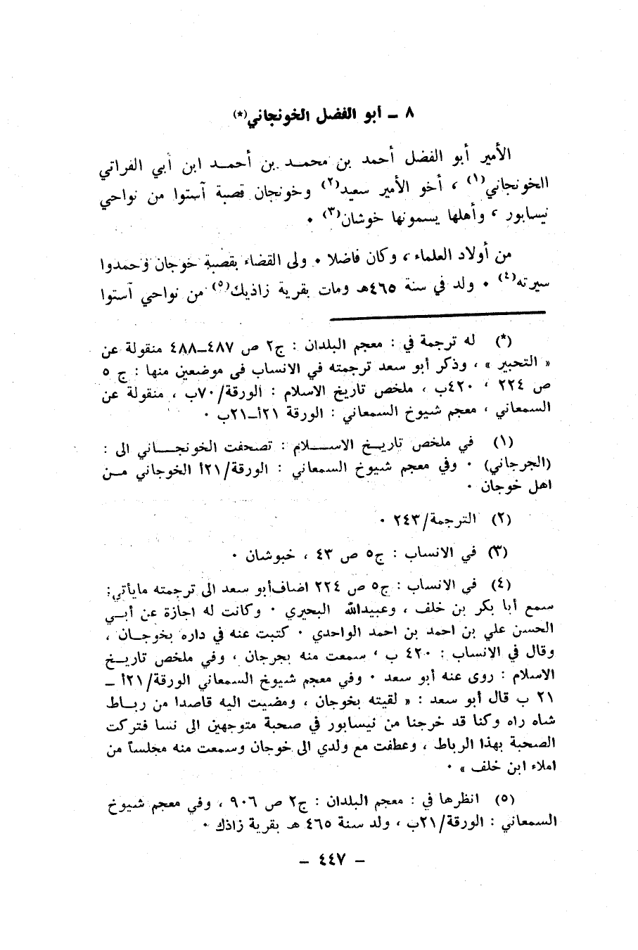 الأمير أبو الفضل أحمد بن محمد بن أحمد ابن أبي الفراتي الخونجاني، أخو الأمير سعيد وخونجان قصبة آستوا من نواحي نيسابور، وأهلها يسمونها خوشان.