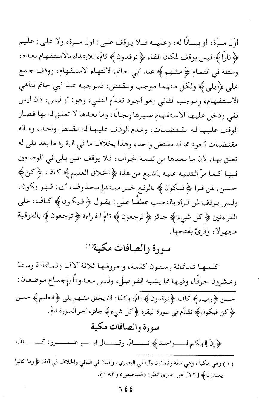 سورة والصافات مكيّة إِنَّ إِلهَكُمْ لَواحِدٌ تامّ، وقال أبو عمرو: كاف