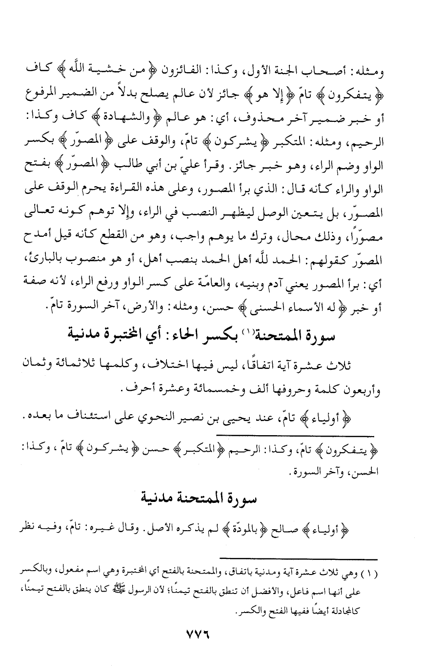 سورة الممتحنة مدنية أَوْلِياءَ صالح بِالْمَوَدَّةِ لم يذكره الأصل. وقال غيره: تامّ، وفيه نظر