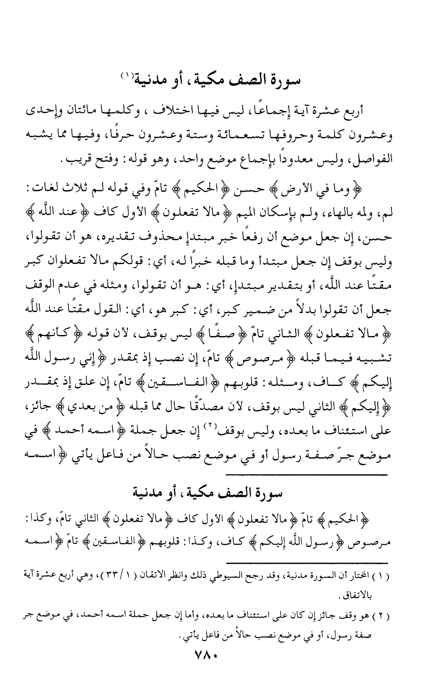 سورة الصف مكية، أو مدنية الْحَكِيمُ تامّ ما لا تَفْعَلُونَ الأول كاف ما لا تَفْعَلُونَ الثاني تامّ، وكذا: