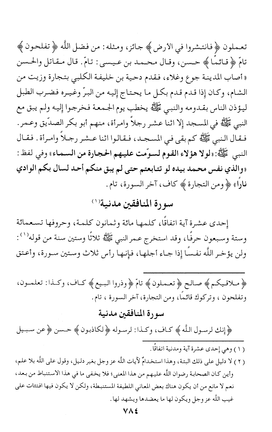 «والذي نفس محمد بيده لو تتابعتم حتى لم يبق منكم أحد لسال بكم الوادي نارا» وَمِنَ التِّجارَةِ كاف، آخر السورة، تام.