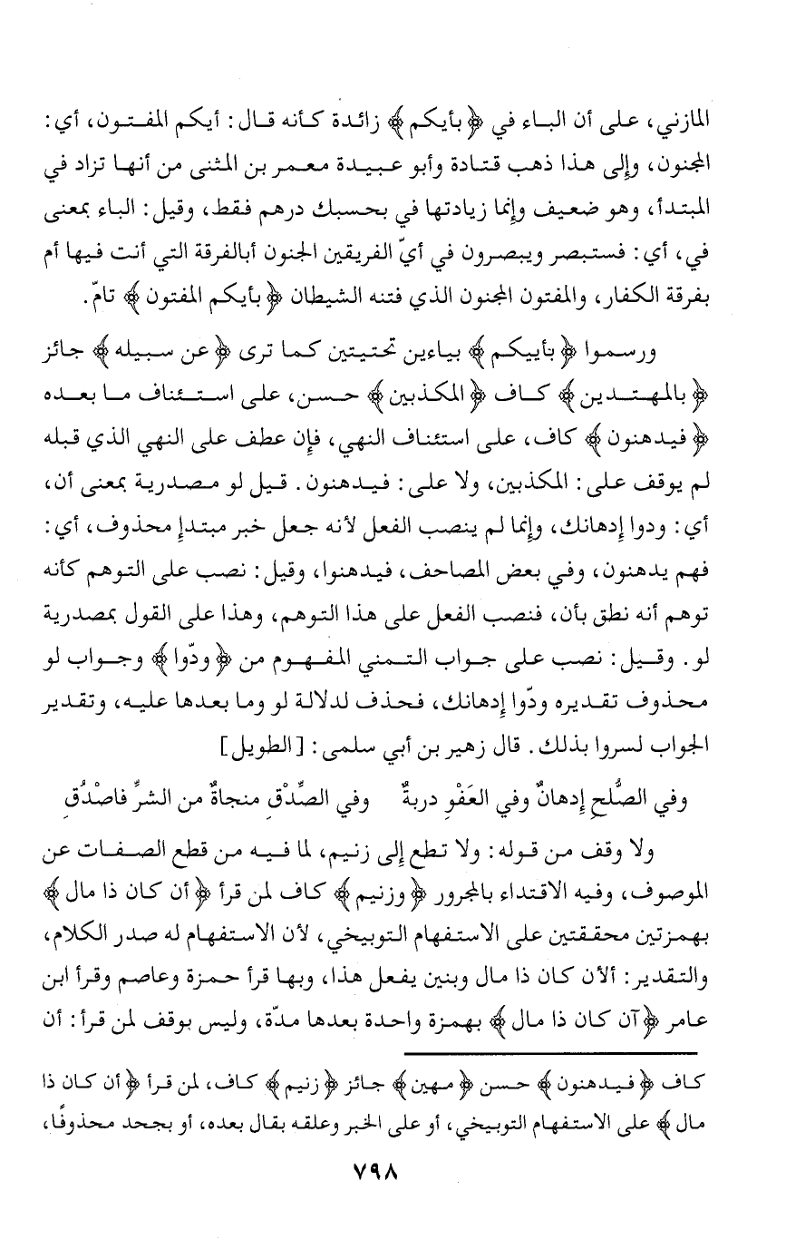 ورسموا بأييكم بياءين تحتيتين كما ترى عَنْ سَبِيلِهِ جائز بِالْمُهْتَدِينَ كاف الْمُكَذِّبِينَ حسن، على استئناف ما بعده فَيُدْهِنُونَ كاف، على استئناف النهي، فإن عطف على النهي الذي قبله لم يوقف على: المكذبين، ولا على: فيدهنون. قيل لو مصدرية بمعنى أن، أي: ودوا إدهانك، وإنما لم ينصب الفعل لأنه جعل خبر مبتدإ محذوف، أي: