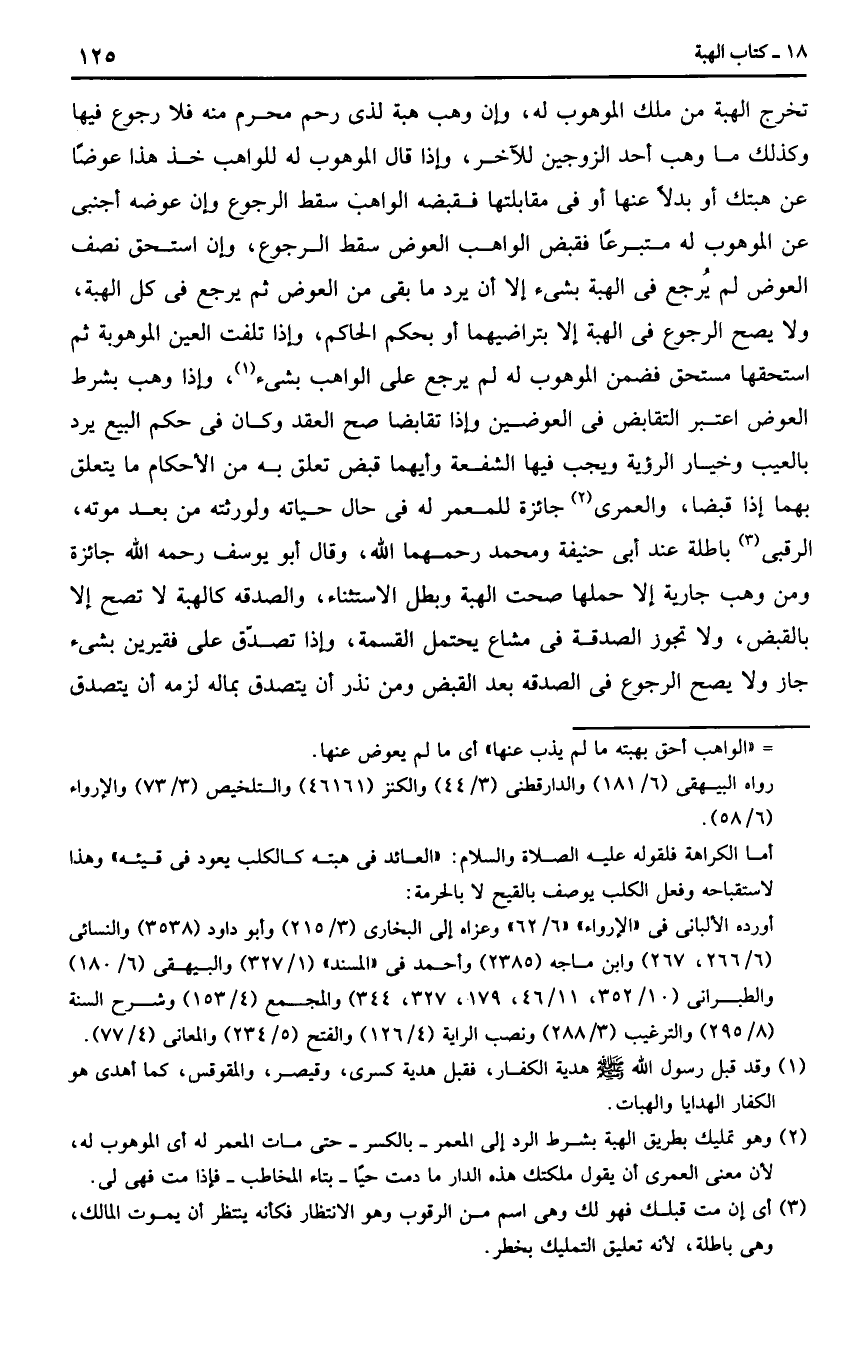 وإذا وهب بشرط العوض اعتبر التقابض في العوضين وإذا تقابضا صح العقد وصار في حكم البيع: يرد بالعيب وخيار الرؤية وتجيب فيه الشفعة