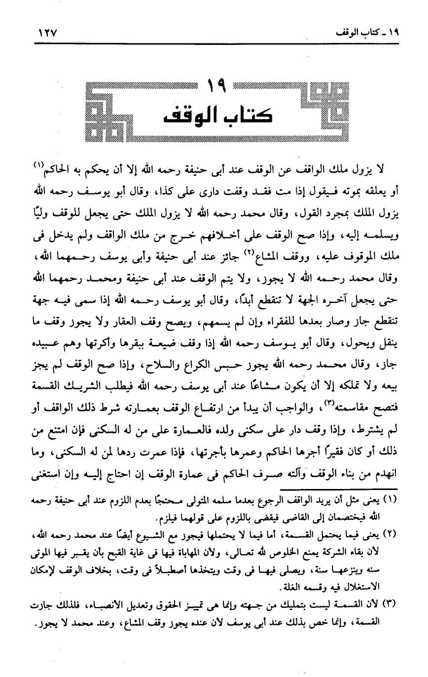 لا يزول ملك الواقف عن الوقف عند أبي حنيفة إلا أن يحكم به الحاكم أو يعلقه بموته فيقول: إذا مت فقد وقفت داري على كذا وقال أبو يوسف: يزول الملك بمجرد القول