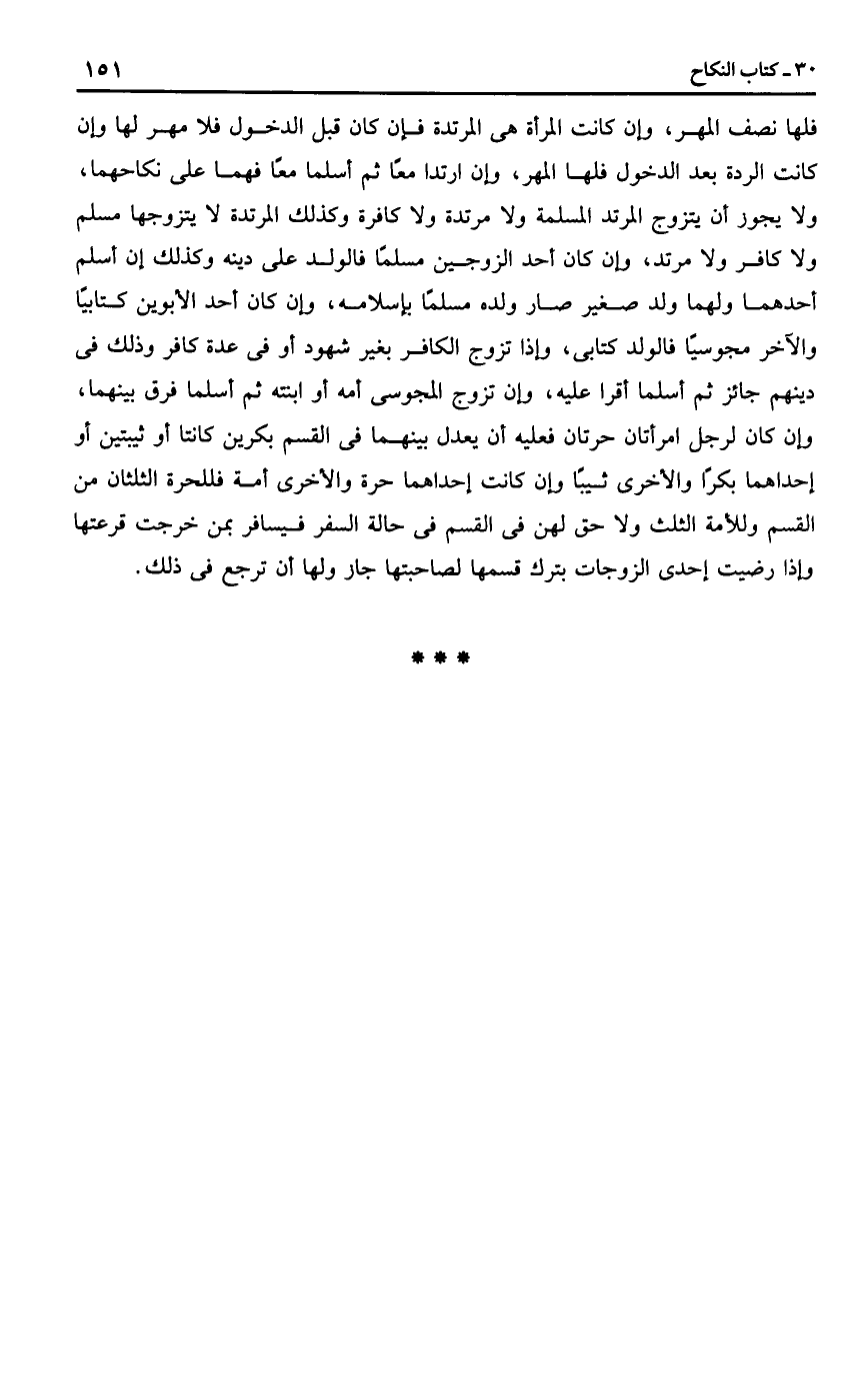 ولا يجوز أن يتزوج المرتد مسلمة ولا كافرة ولا مرتدة وكذلك المرتدة لا يتزوجها مسلم ولا كافر ولا مرتد