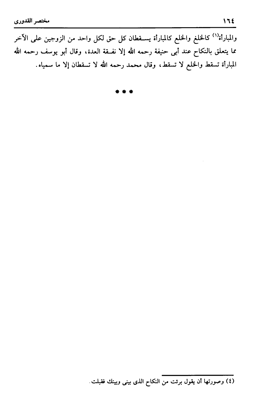والمبارأة كالخلع والخلع كالمبارأة يسقطان كل حق لكل واحد من الزوجين على الآخر مما يتعلق بالنكاح عند أبي حنيفة رحمه الله إلا نفقة العدة وقال أبو يوسف رحمه الله المبارأة تسقط والخلع لا تسقط وقال محمد رحمه الله لا تسقطان إلا ما سمياه.