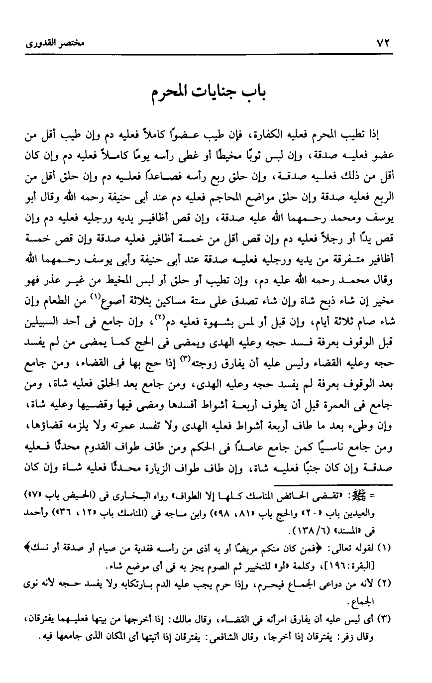 وإن لبس ثوبا مخيطا أو غطى رأسه يوما كاملا فعليه دم وإن كان أقل من ذلك فعليه صدقة وإن حلق ربع رأسه فصاعدا فعليه دم وإن حلق أقل من الربع فعليه صدقة