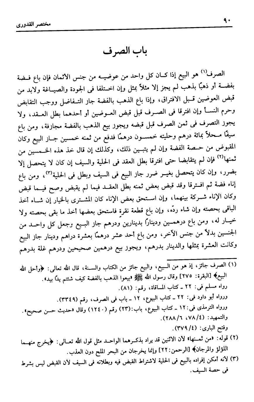 الصرف هو: البيع إذا كان كل واحد من العوضين من جنس الأثمان فإن باع فضة بفضة أو ذهبا بذهب لم يجز إلا مثلا بمثل وإن اختلفا في الجودة والصياغة ولا بد من قبض العوضين قبل الافترق