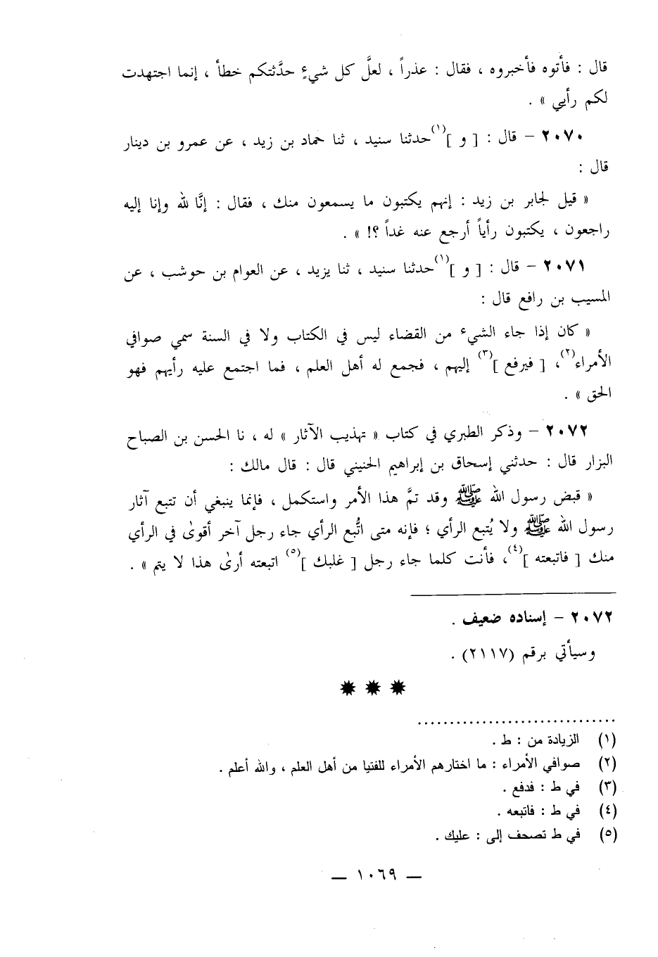 2070 - قَالَ: وَحَدَّثَنَا سُنَيْدٌ، ثنا حَمَّادُ بْنُ زَيْدٍ، عَنْ عَمْرِو بْنِ دِينَارٍ قَالَ: قِيلَ لِجَابِرِ بْنِ زَيْدٍ، إِنَّهُمْ يَكْتُبُونَ مَا يَسْمَعُونَ مِنْكَ فَقَالَ: {إِنَّا لِلَّهِ وَإِنَّا إِلَيْهِ رَاجِعُونَ} [البقرة: 156] §«يَكْتُبُونَ رَأْيًا أَرْجِعُ عَنْهُ غَدًا»