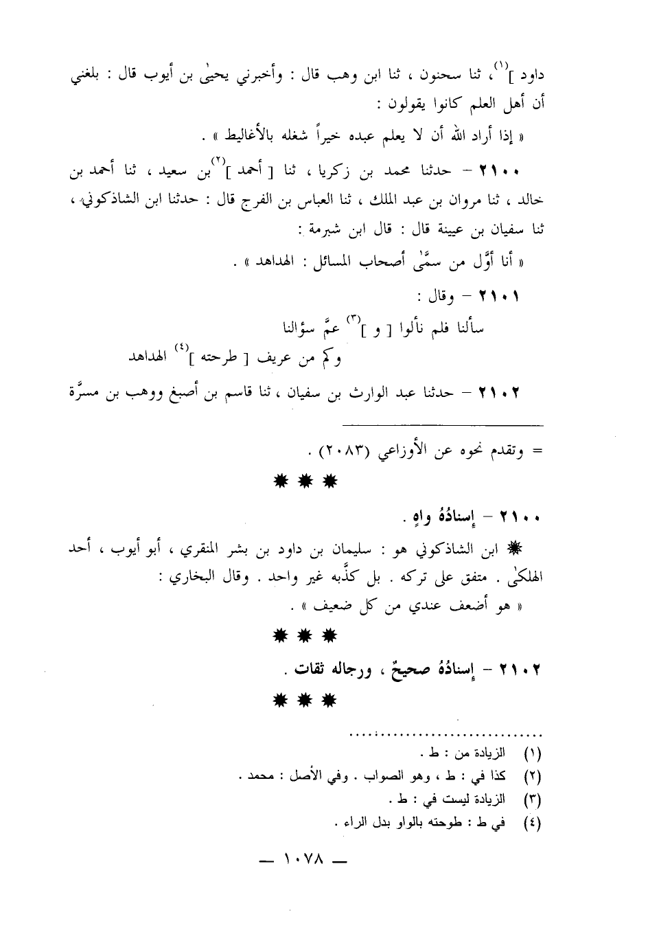 2100 - حَدَّثَنَا مُحَمَّدُ بْنُ زَكَرِيَّا، ثنا أَحْمَدُ بْنُ سَعِيدٍ، ثنا أَحْمَدُ بْنُ خَالِدٍ، ثنا مَرْوَانُ بْنُ عَبْدِ الْمَلِكِ، ثنا الْعَبَّاسُ بْنُ الْفَرَجِ قَالَ: حَدَّثَنَا ابْنُ الشَّاذَكُونِيِّ ثنا سُفْيَانُ بْنُ عُيَيْنَةَ قَالَ: قَالَ ابْنُ شُبْرُمَةَ: «أَنَا §أَوَّلُ مَنْ سَمَّى أَصْحَابَ الْمَسَائِلِ الْهَدَاهِدَ»